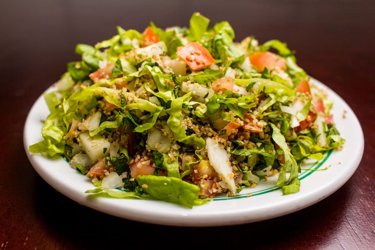 Alface, tomate, cebola, pepino e trigo