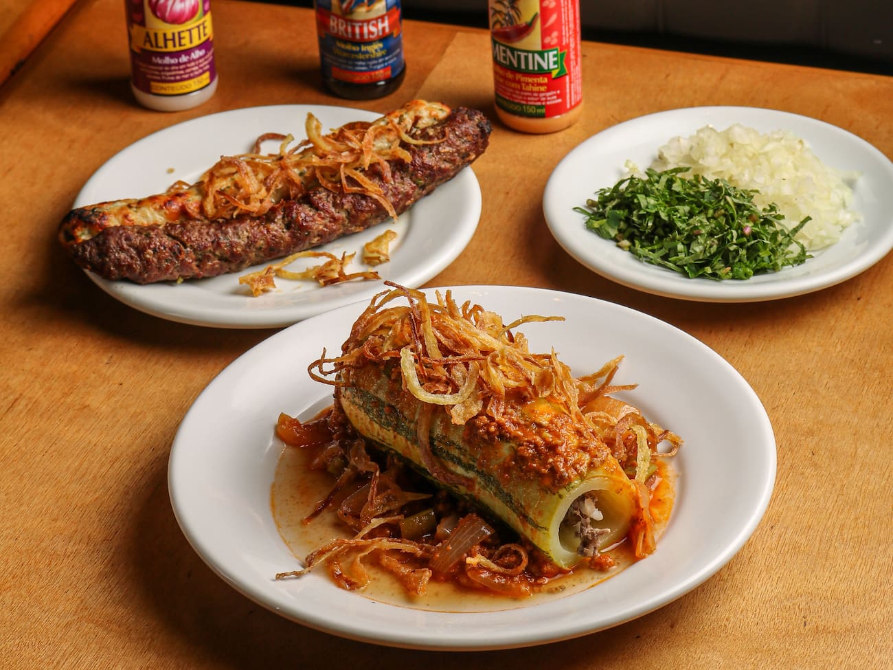 Meia porção de abobrinha recheada+ 2 kaftas no espeto (carne ou frango)