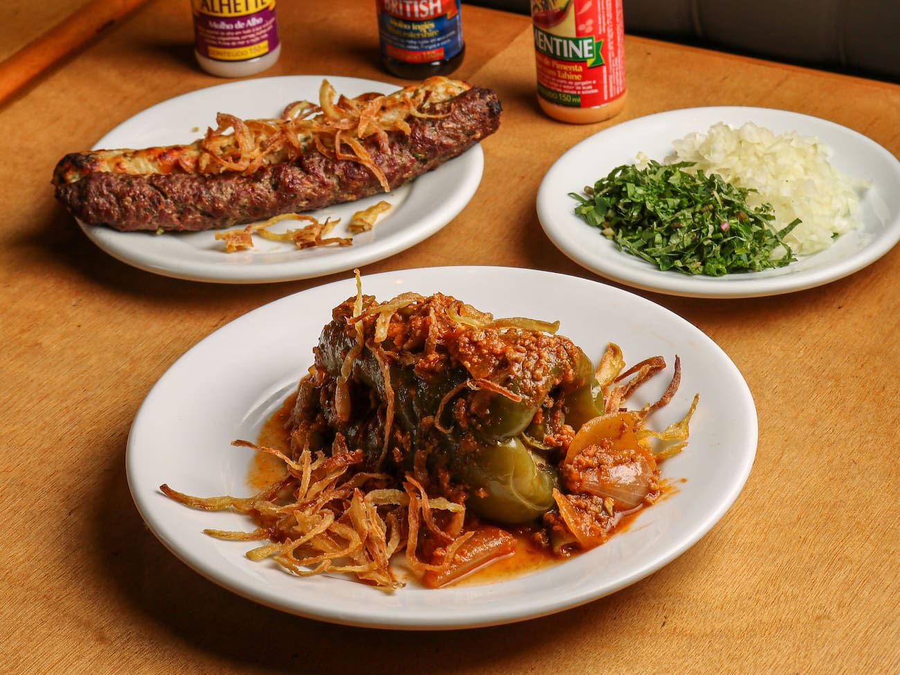 Meia porção de pimentão recheado+ 2 kaftas no espeto (carne ou frango)