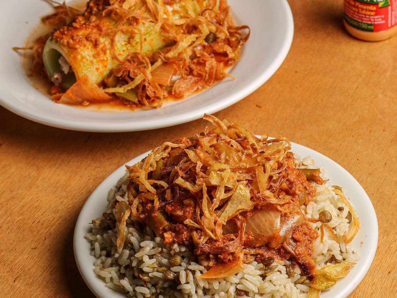 Meia porção de arroz com lentilha+ meia porção de repolho recheado